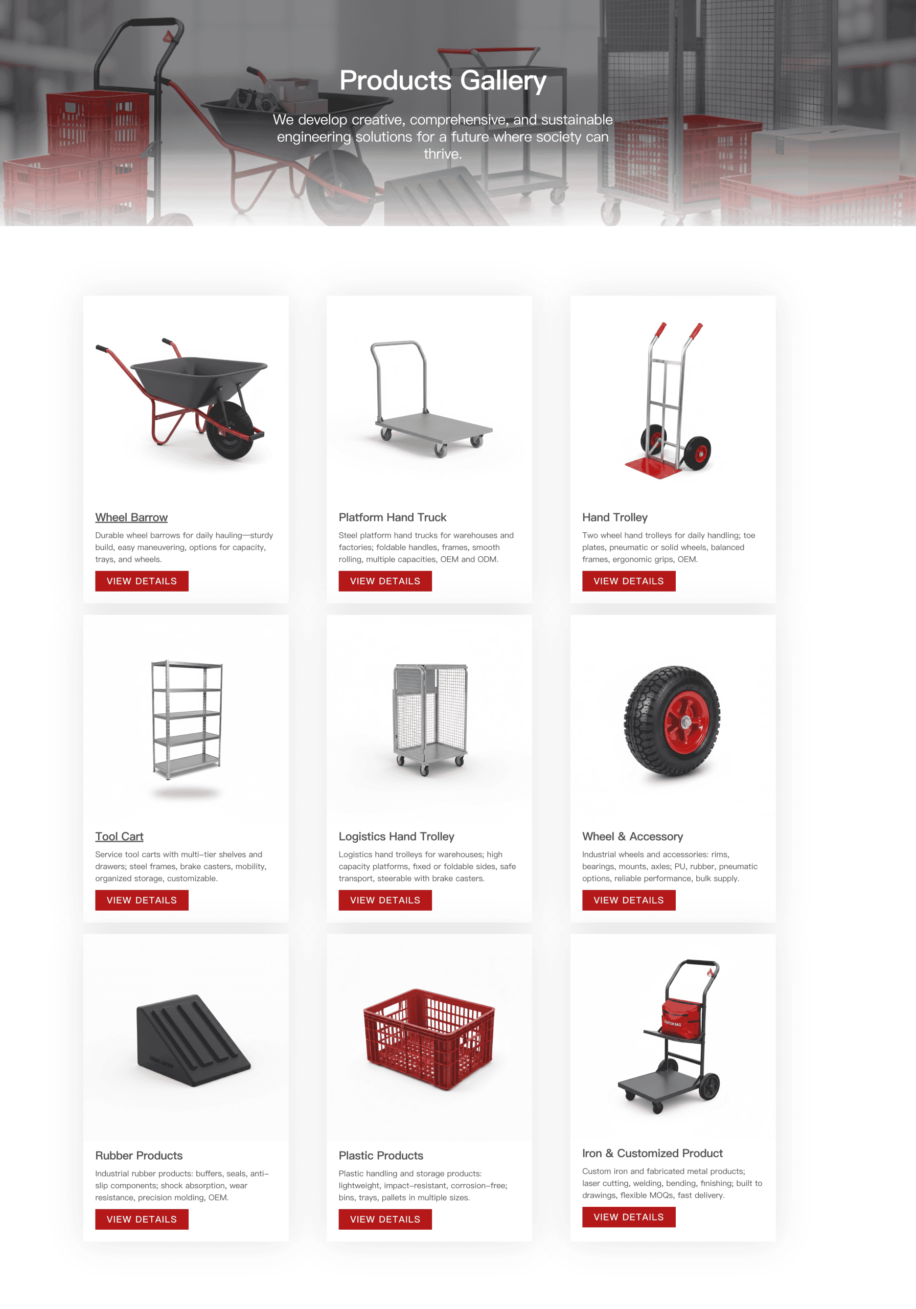 客户拥有四十余年历史的中国制造业500强企业,是全球领先的物流仓储设备(手推车、台车)、橡胶制品(轮胎)和塑料制品的制造商与出口商。